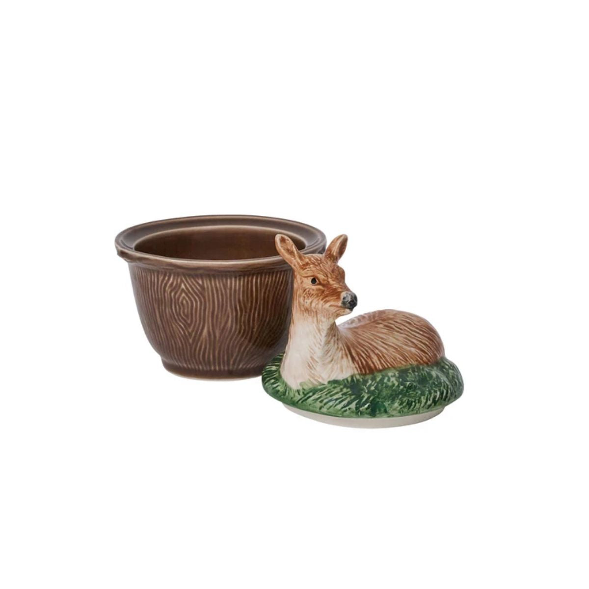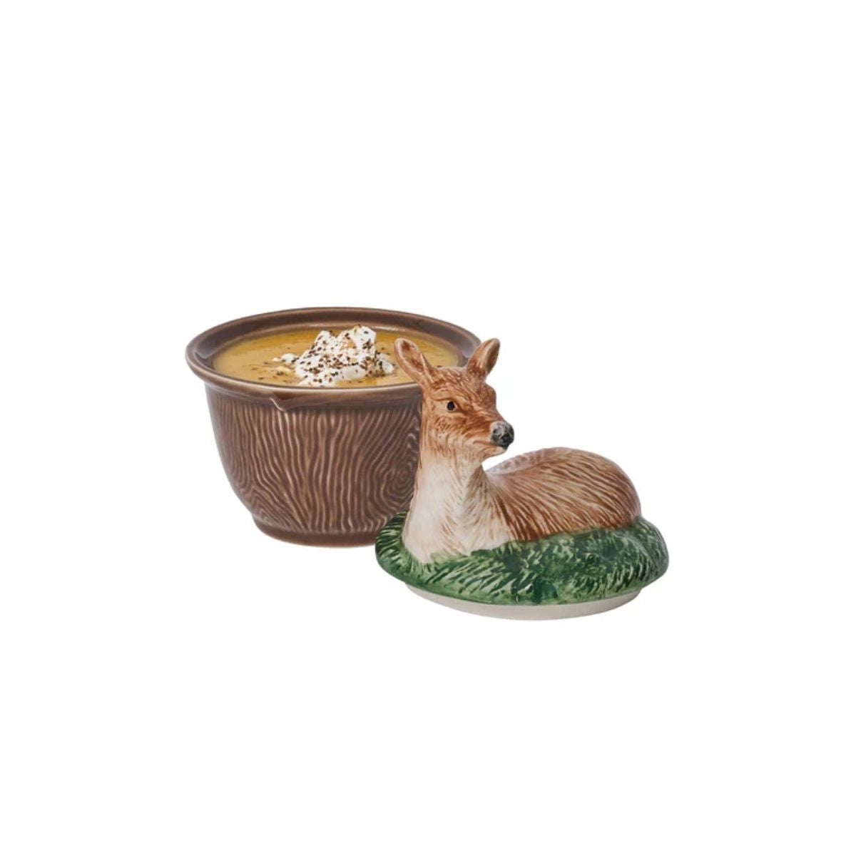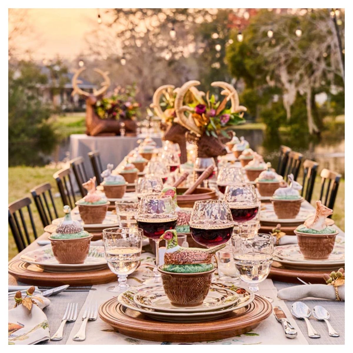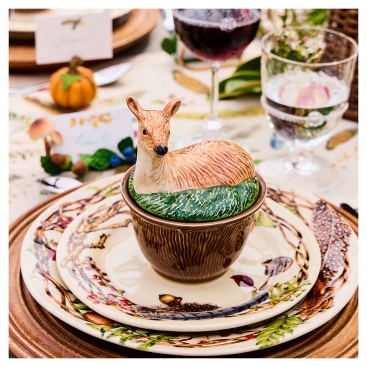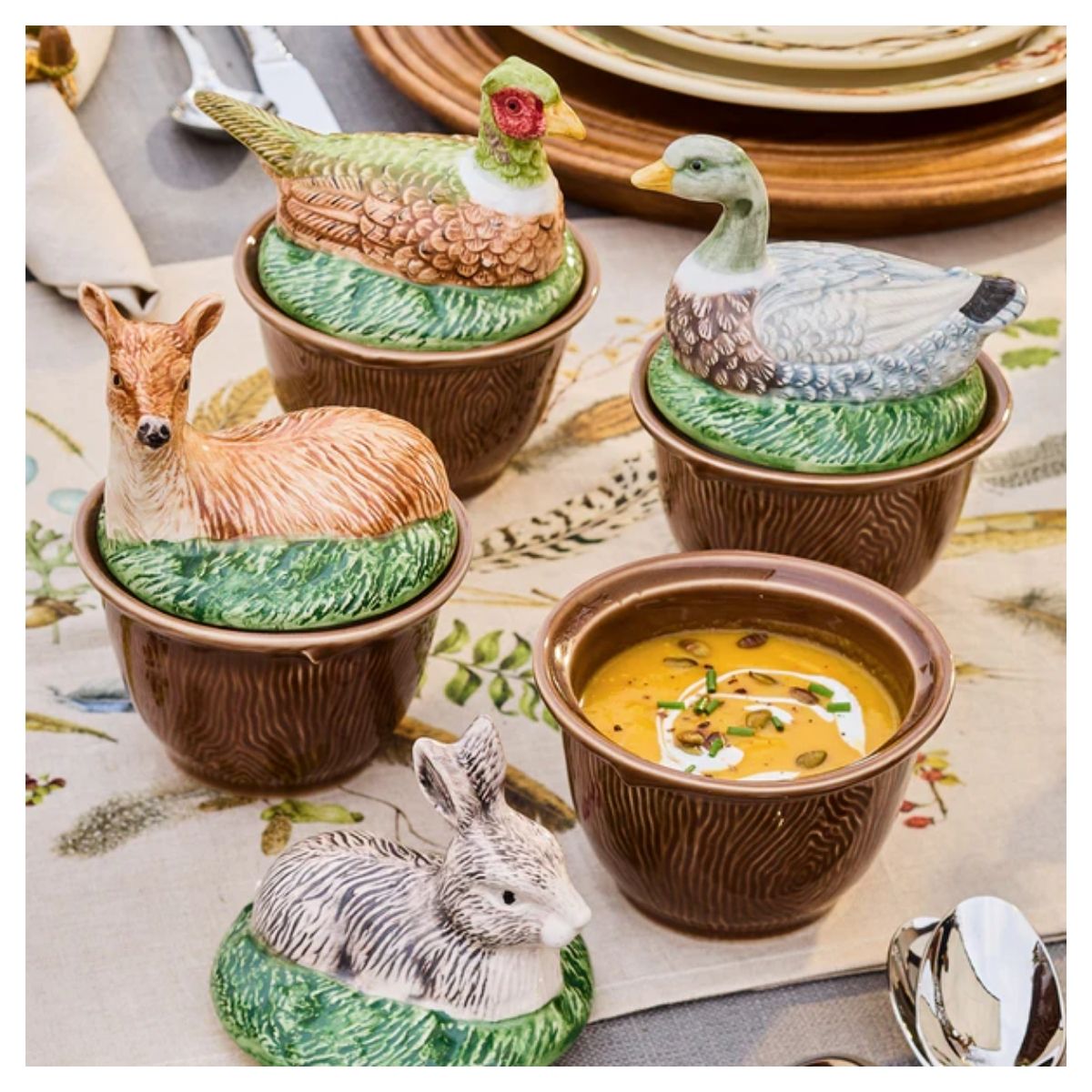 La irresistible fauna y las aves de los bosques de otoño capturan la imaginación y añaden encanto a sus paisajes de mesa otoñales con efigies bellamente esculpidas y pintadas a mano en Portugal, con intrincados detalles, sobre cuencos de cerámica con un rico motivo de vetas de madera. Conejo, Faisán, Ciervo y Pato son ideales para servir sopas, postres o condimentos, y siempre están listos para la fiesta. Sus dimensiones son 13.97 cm de largo, 12.07 cm de ancho y 17.15 cm de alto.