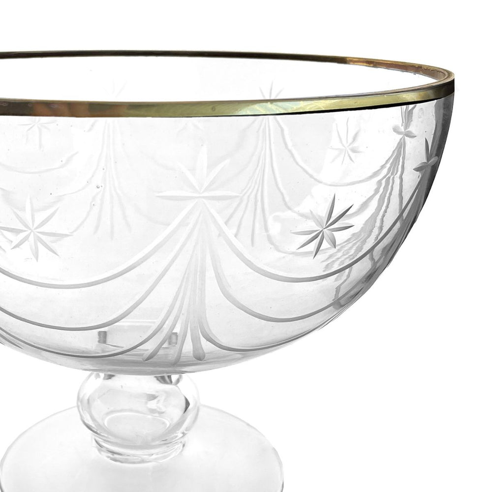 GLASS BOWL WITH CUTTING WITH GOLD RIM D15