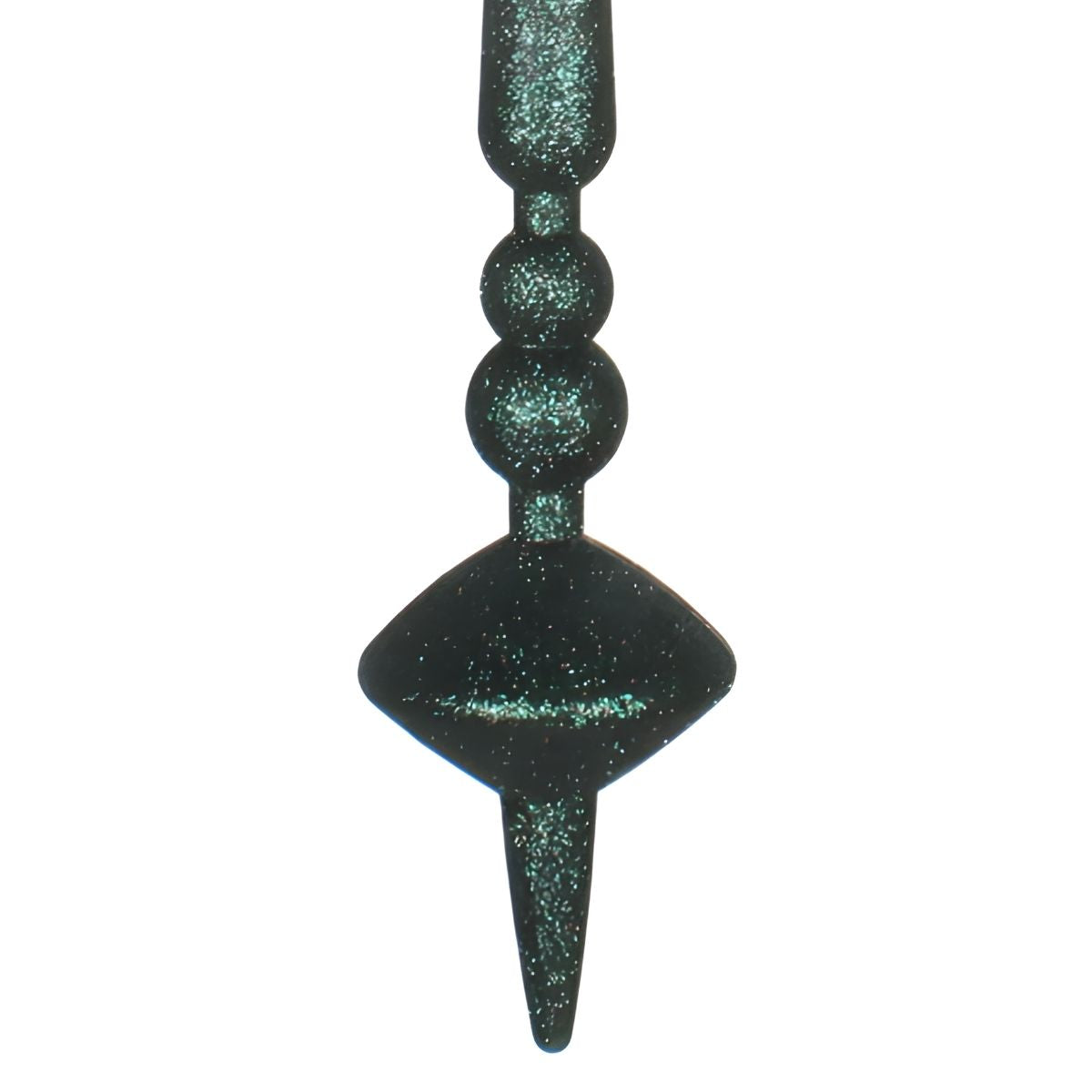 Vickerman 18 "Midnight Green Glitter Cupola Finial. Este largo adorno añade profundidad y textura a cualquier proyecto de decoración navideña. Fabricado con plástico inastillable. Incluye 2 piezas por bolsa.