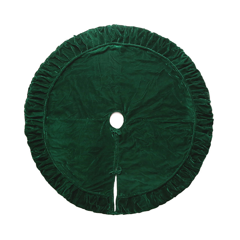 Aporte un toque de elegancia clásica a su árbol de Navidad con esta falda de 72 pulgadas. Confeccionada en un lujoso terciopelo verde esmeralda, este material opulento asegura una estética coordinada y refinada, ideal para combinar con botas, cintas y lazos del mismo tejido. Con un generoso diámetro de 72 pulgadas, cuenta con un reverso completamente forrado y tres prácticos lazos de cierre para asegurar que se mantenga en su lugar, ofreciendo estilo y funcionalidad.