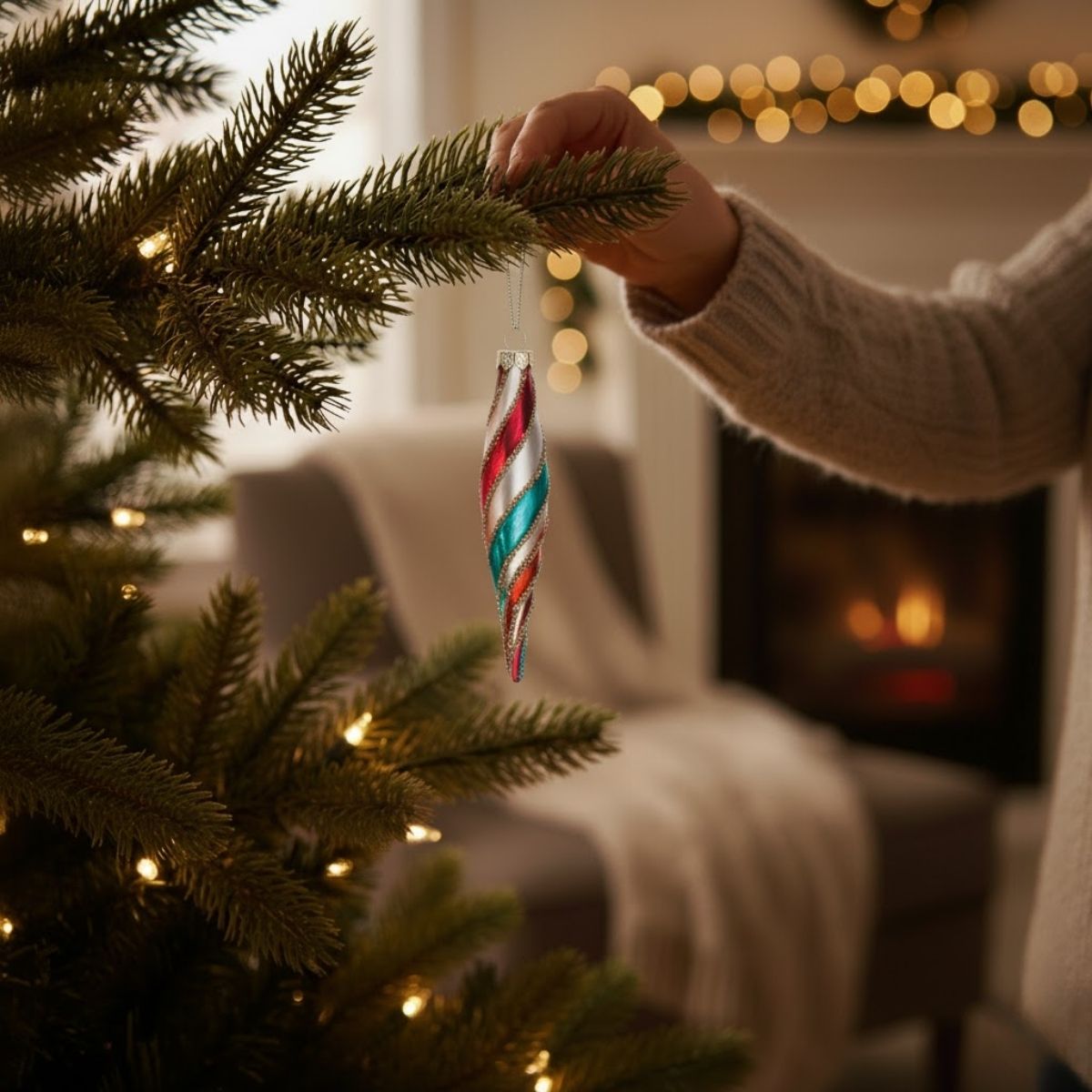 "7""H Glass Ornament w Stripes &" - CREATIVE COOP - Compralo en CorinneRegalos.com