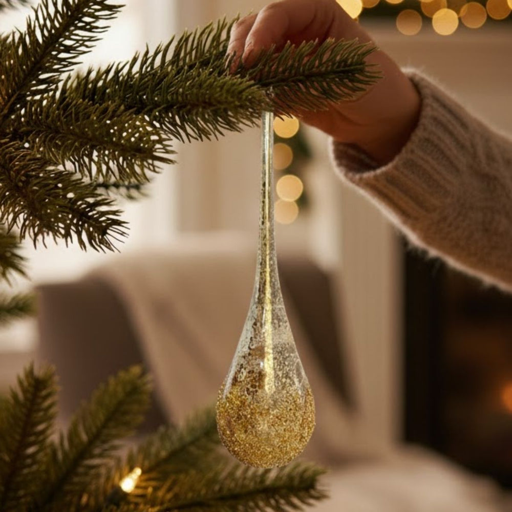 GLASS DROP ANTIQUE GOLD GLITTERED BOTTOM 34CM