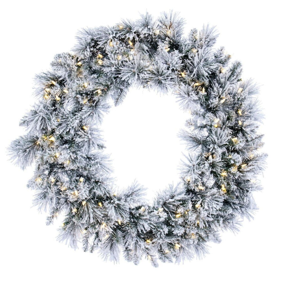 36 FLKD SNOW RIDGE WREATH LED 100PW