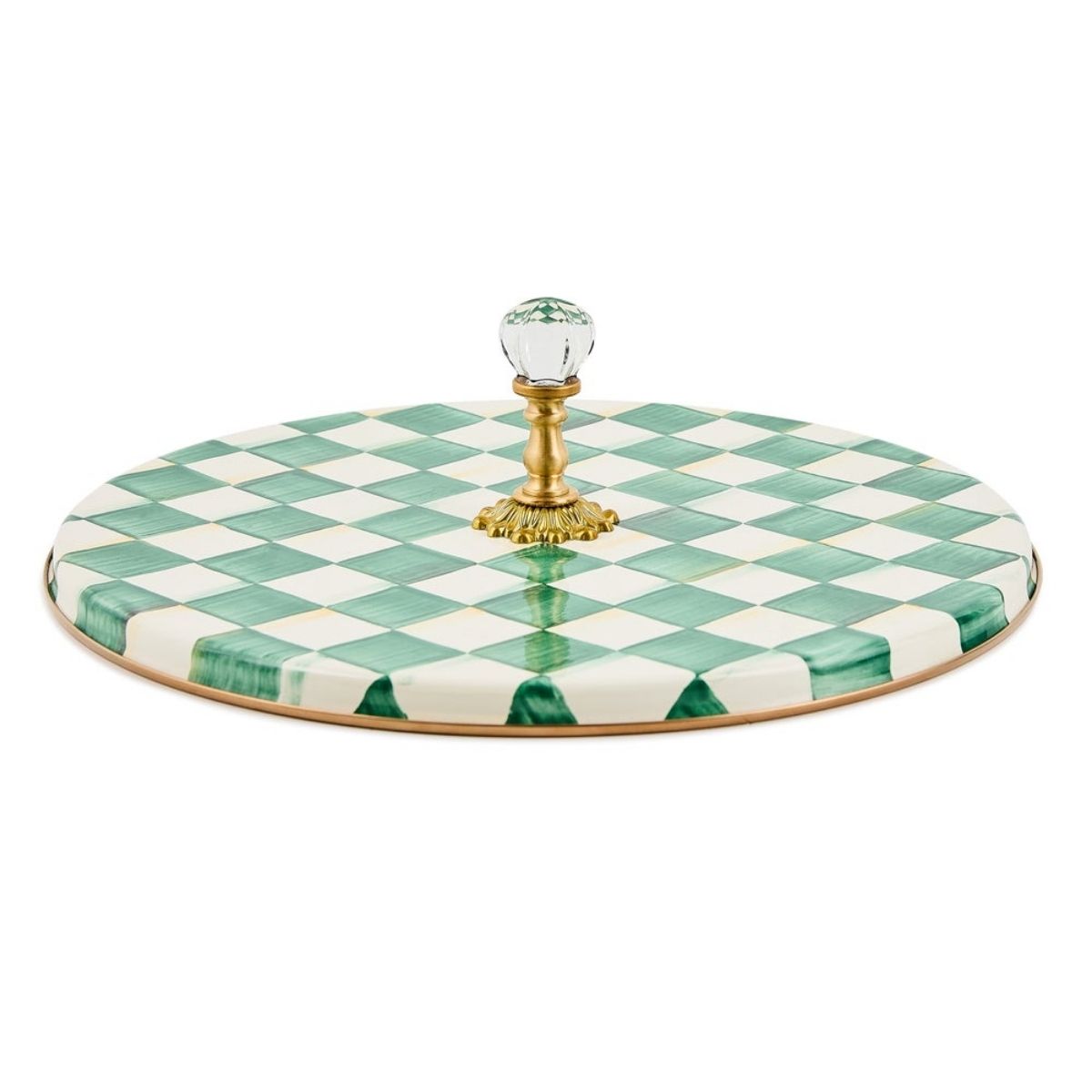 Ya sea que esté preparando una tabla de charcutería o presentando pasteles, el Plato de Quesos Emerald Check se sirve con estilo. Presenta el patrón de cuadros pintados a mano en tonos esmeralda sobre una base de acero de gran espesor esmaltado a mano. Incluye un pomo de vidrio transparente en el centro para facilitar el manejo. Es perfecto para añadir un toque de elegancia y diseño a su próxima reunión, realzando con facilidad tanto el entretenimiento informal como el formal.