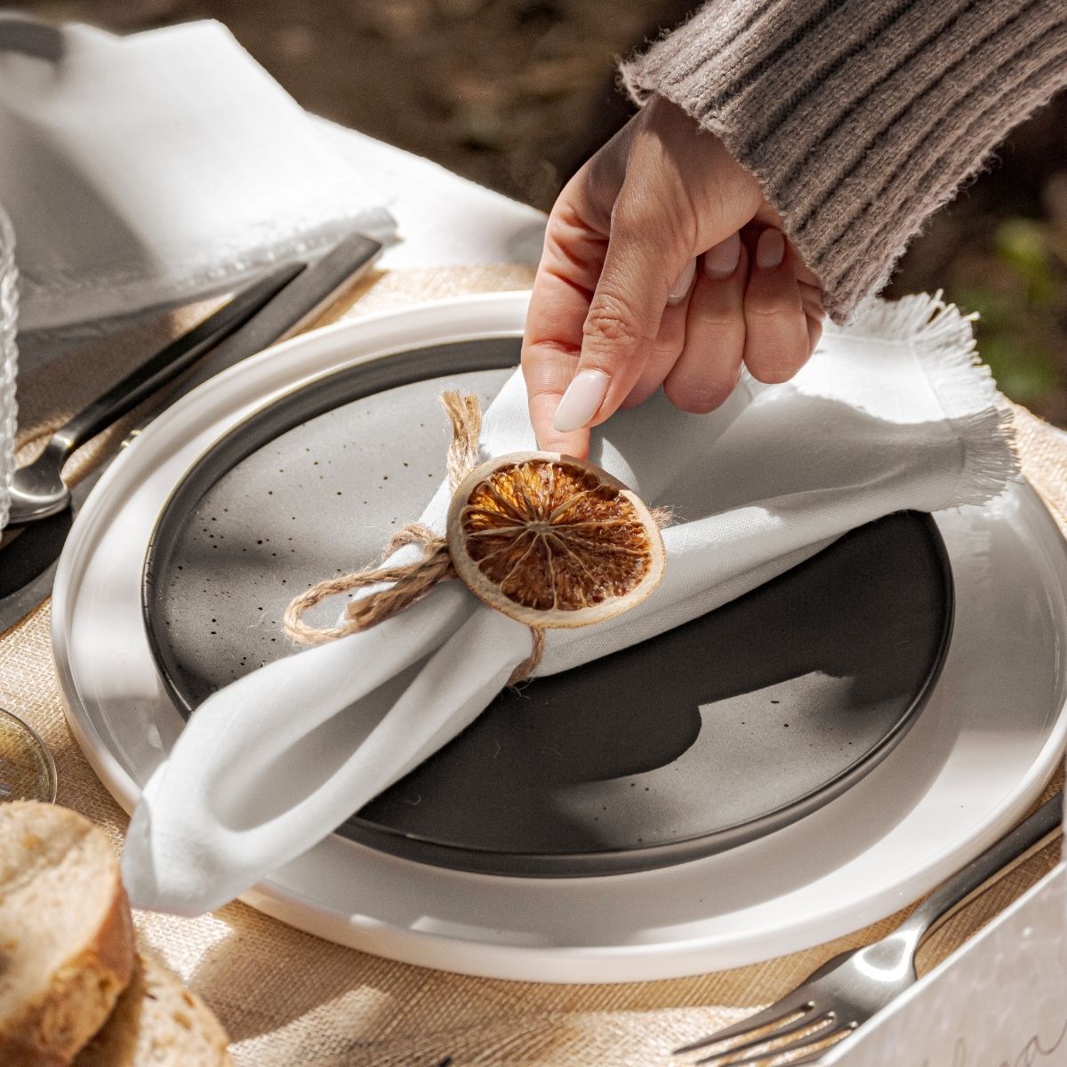 Aporte una elegancia pura y atemporal a su mesa con este set de 4 servilletas "Sofia". Pertenecientes a la colección "Back to Basics", están confeccionadas en 100% lino blanco de alta calidad. Su diseño se caracteriza por un borde desflecado ofreciendo una estética natural, versátil y sofisticada, ideal para cualquier ocasión.