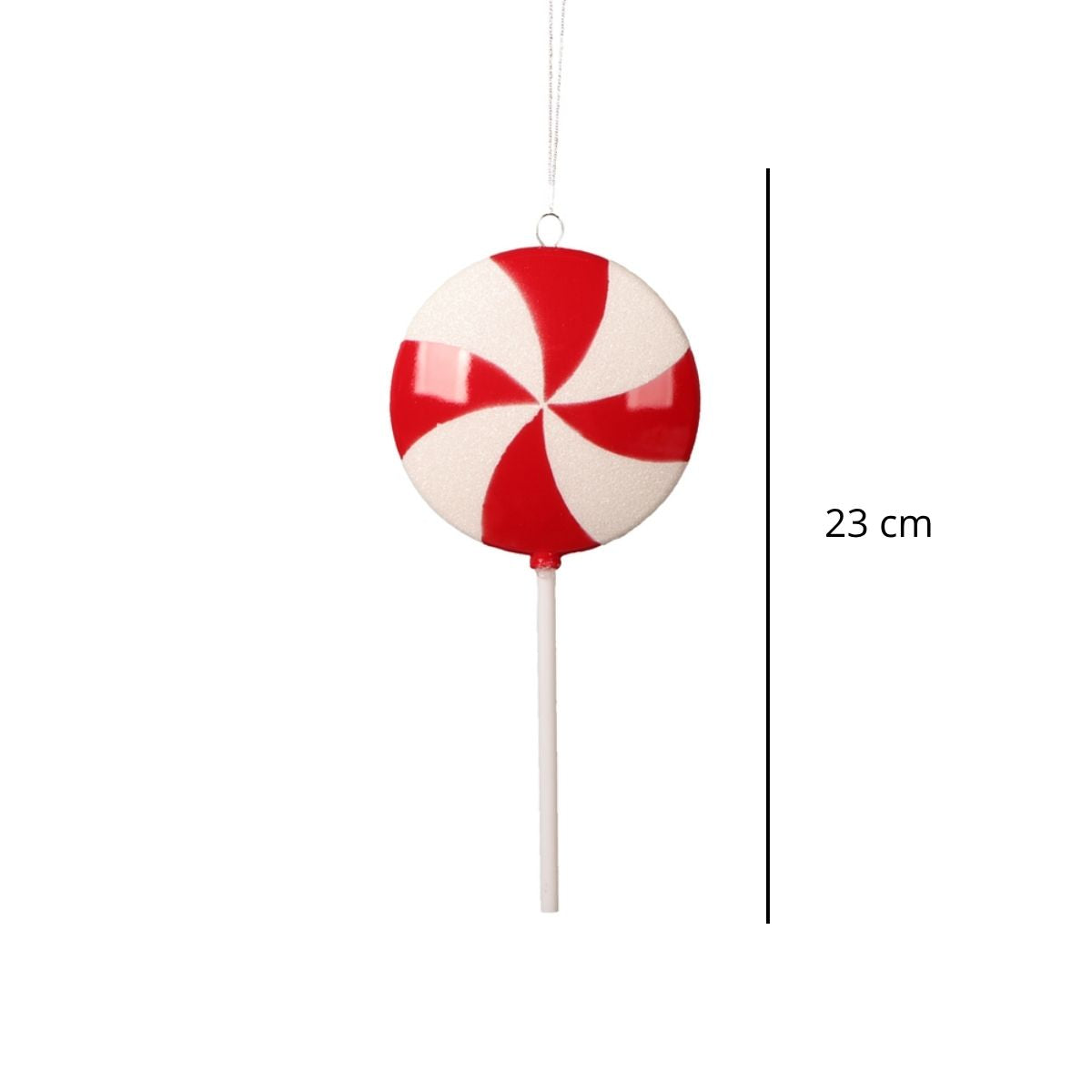 Dale un toque dulce y divertido a tu decoración navideña con este vibrante adorno en forma de piruleta. Su diseño plano y su llamativo color rojo con acabado esmaltado lo convierten en una pieza destacada que captura la alegría de la temporada. Es perfecto para colgar en árboles de Navidad de gran tamaño, en guirnaldas o como parte de una decoración temática de dulces, añadiendo un toque de fantasía y color.Características: -Este adorno está fabricado en plástico duradero con un acabado de esmalte brillante que le da un aspecto pulido y vibrante- Con una altura de 22.9 cm, es un adorno de tamaño considerable, ideal para decoraciones de impacto- Su diseño de piruleta plana lo hace ligero y fácil de colocar.