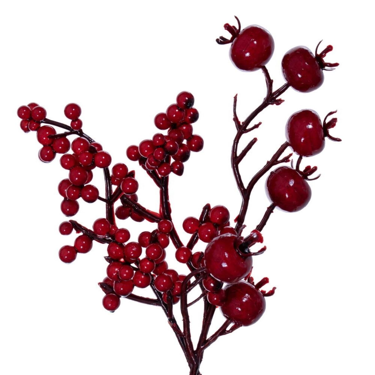 - Elaborada con bayas rojas mixtas artificiales en abundantes racimos.