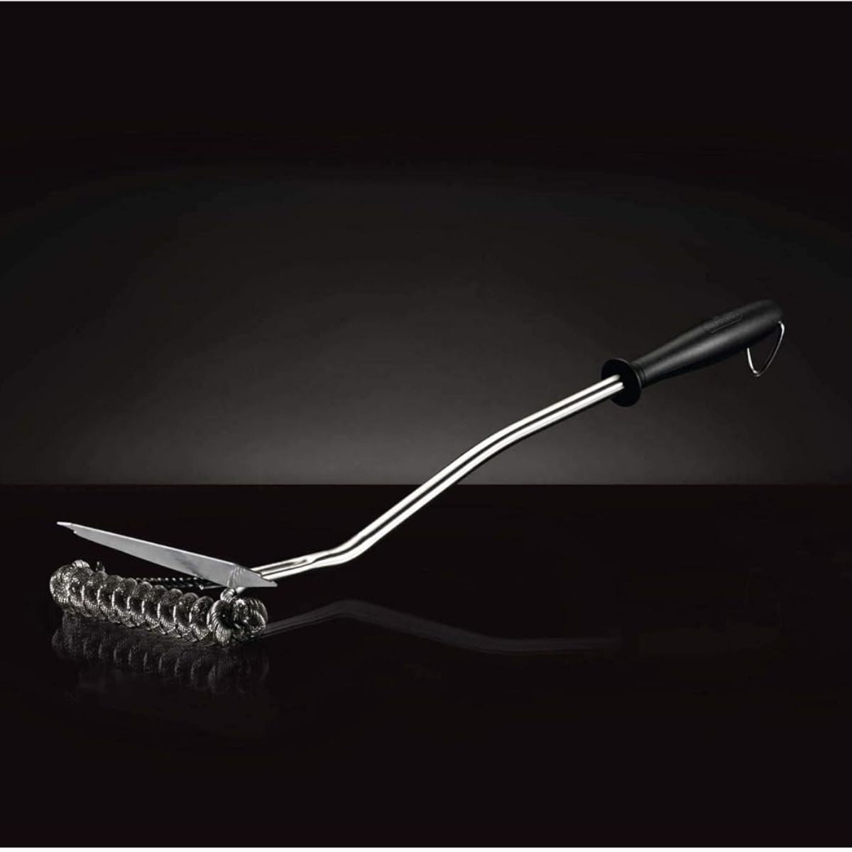 Elimine las preocupaciones por las cerdas sueltas con el cepillo para parrilla "Bristle Free" de Napoleon. Este accesorio de limpieza avanzado utiliza bobinas de acero inoxidable entrelazadas en lugar de cerdas individuales, proporcionando una limpieza profunda y segura en sus rejillas de acero inoxidable. Su diseño extra ancho permite cubrir grandes superficies en una sola pasada, mientras que el raspador metálico integrado de gran tamaño se encarga de los residuos más difíciles y carbonizados. Con un mango ergonómico curvado de más de 60 cm, este cepillo le otorga el apalancamiento necesario para aplicar presión constante sin comprometer la seguridad de sus manos frente al calor.