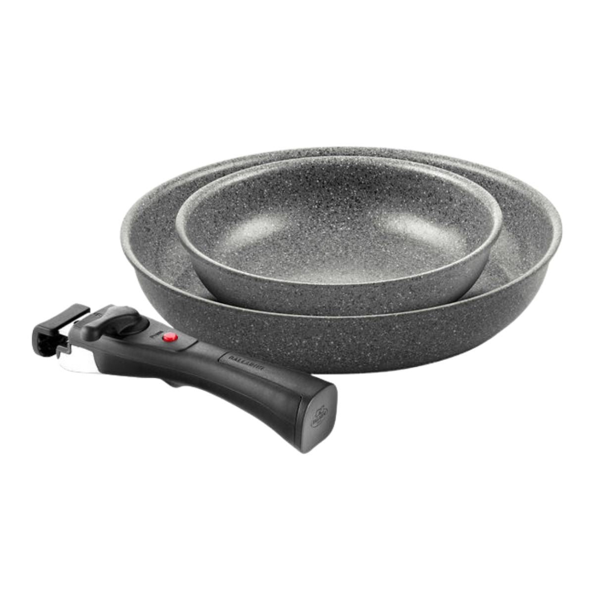 El juego de 3 piezas BALLARINI Torre es la solución integral para equipar su cocina con la máxima versatilidad y eficiencia de espacio. Este set incluye dos sartenes esenciales de 20 cm y 28 cm, junto con un innovador mango extraíble intercambiable. Ambas sartenes cuentan con el avanzado revestimiento cerámico Ceraforce® Granitium, libre de PFAS y metales pesados, que ofrece una durabilidad tres veces superior a los cerámicos convencionales. Su base de inducción RADIANT patentada asegura una distribución uniforme del calor en cualquier tipo de estufa. Gracias al sistema de mango desmontable, puede pasar de saltear en el fuego a hornear (hasta 230 °C) y finalmente apilar las piezas una dentro de otra para ahorrar espacio máximo en sus gabinetes.