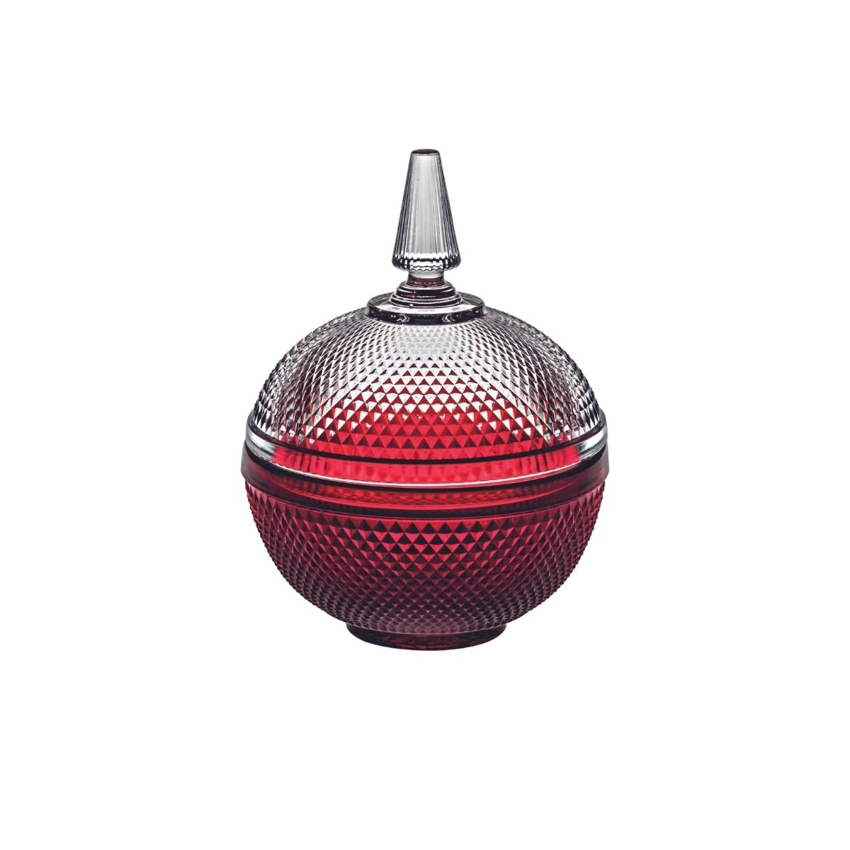 Una pieza clásica y atemporal, esta caja decorativa de la colección Bicos presenta el icónico diseño de puntas de diamante. El primer registro de este tipo de vidrio, conocido como biquinhos, data de un catálogo de 1901. Hoy, producido con el método de prensado, este diseño sigue siendo un favorito.