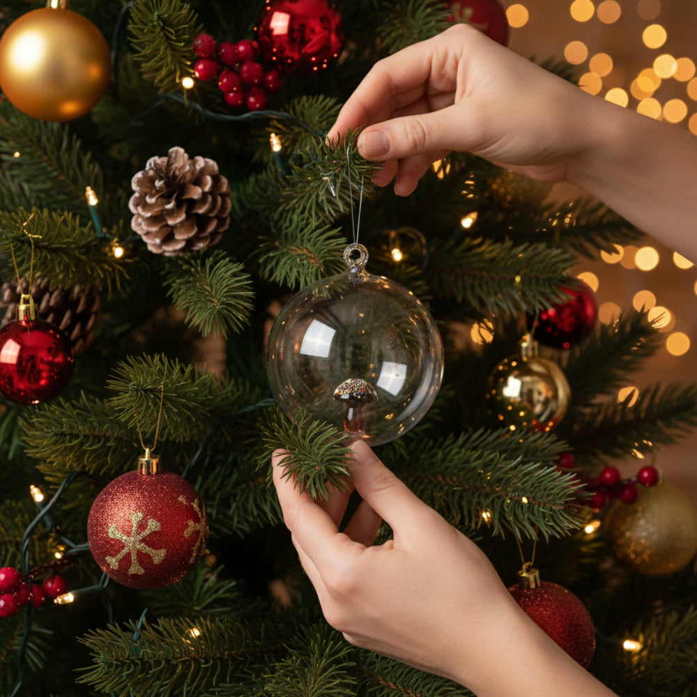 GLASS BALL WITH BROWN MUSHROOM INSIDE 10CM
