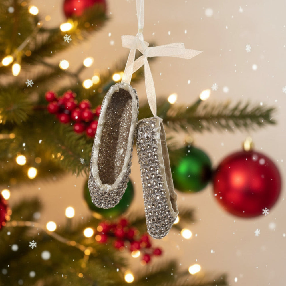 GLASS GLITTER SITTING BEAR SILVER 17CM