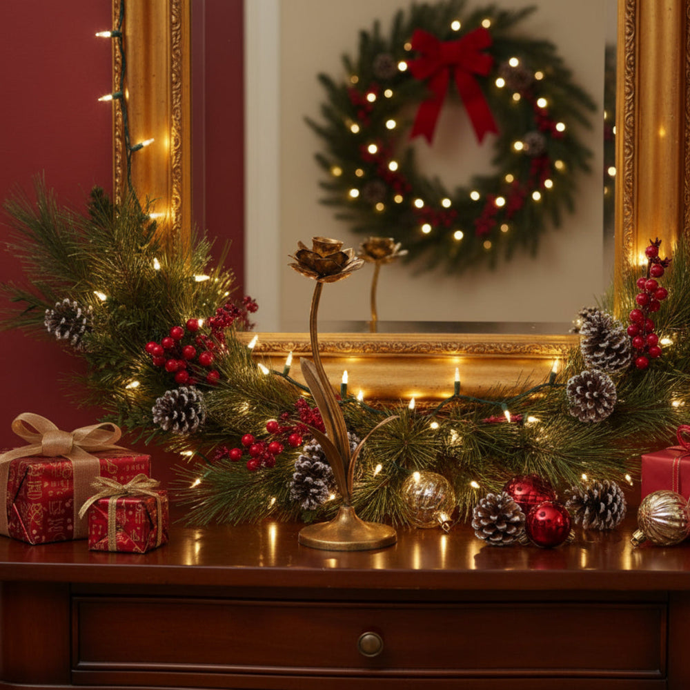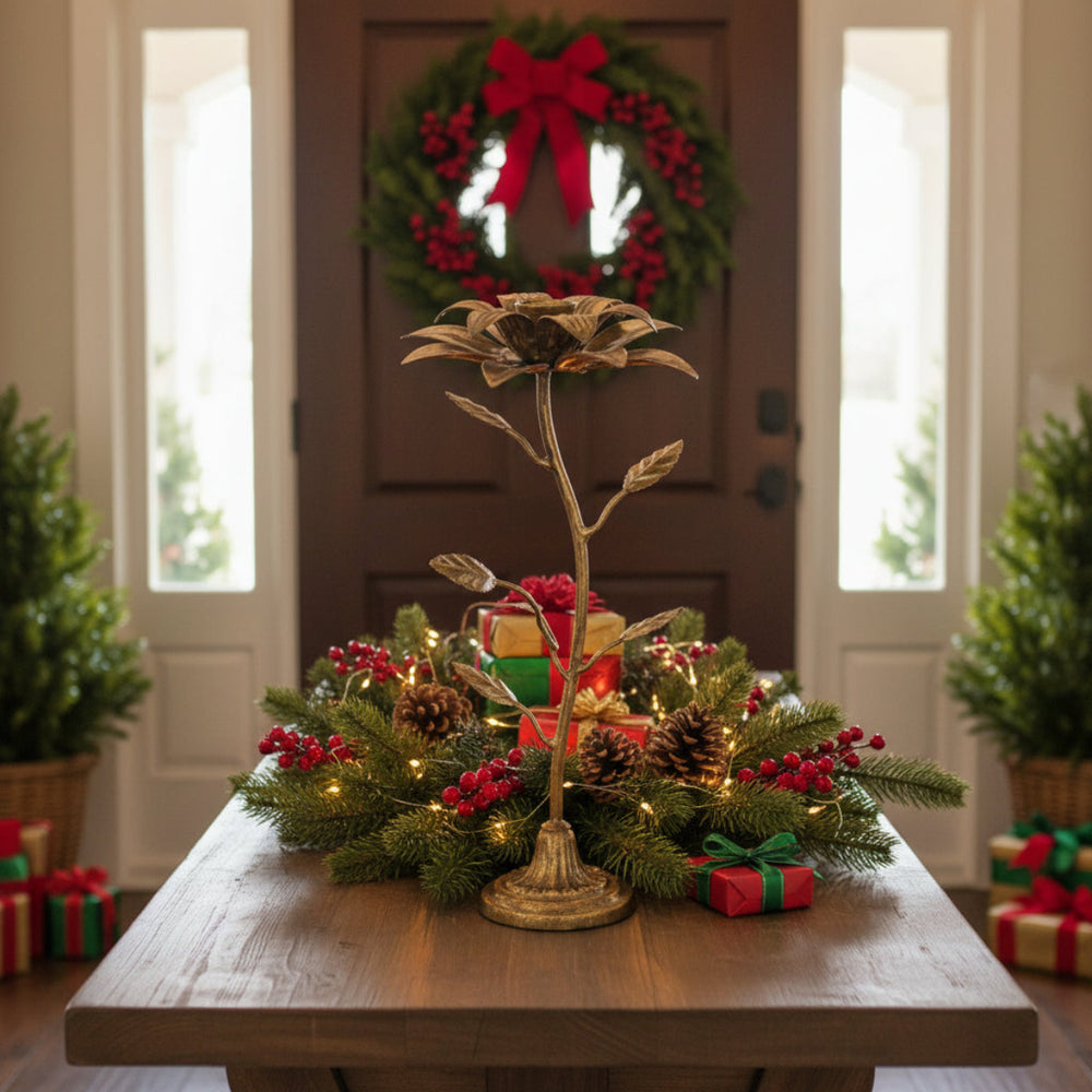 METAL FLOWER CANDLEHOLDER GOLD H28CM