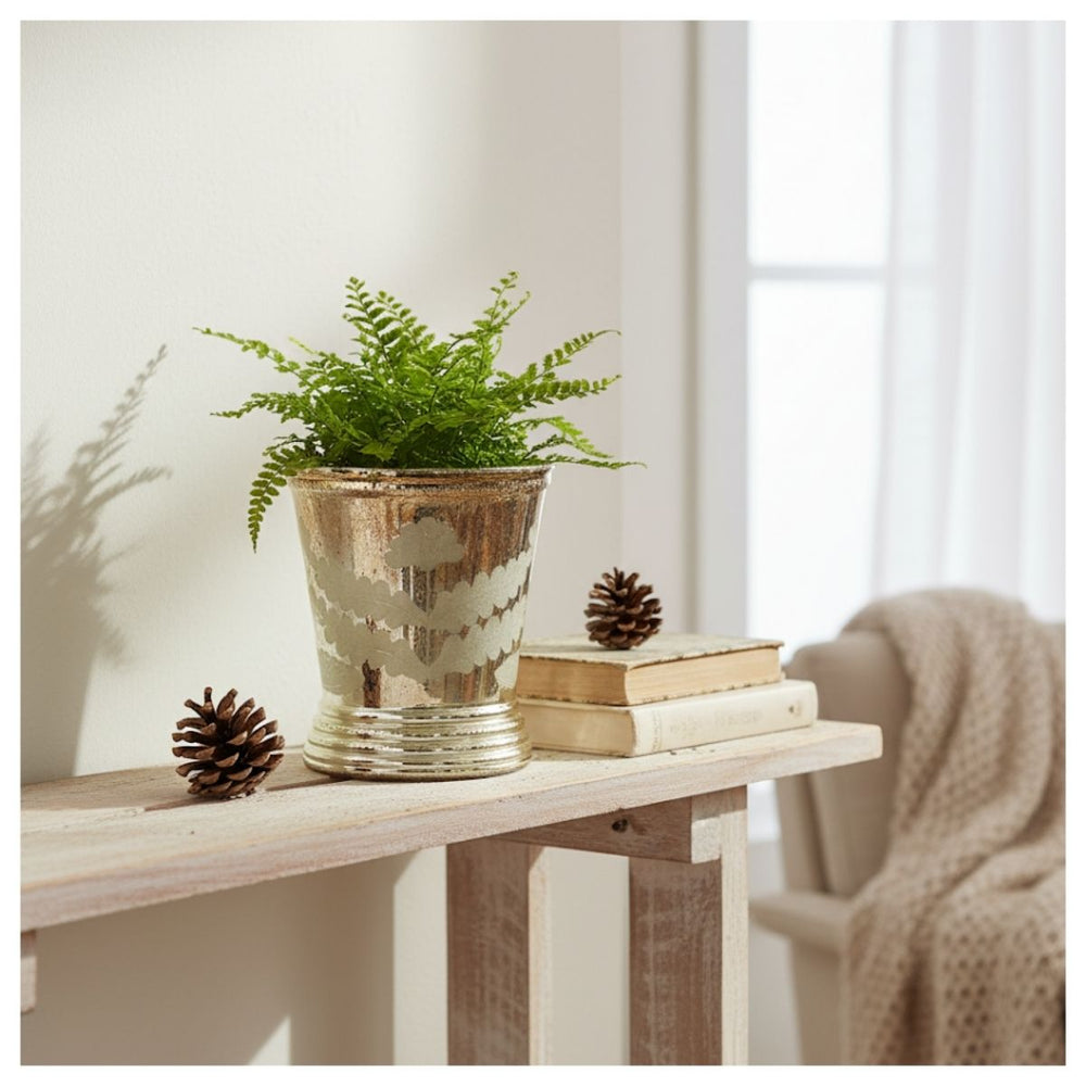 "GLASS POT ENGRAVED RUSTIC GOLDD10;H10CM"