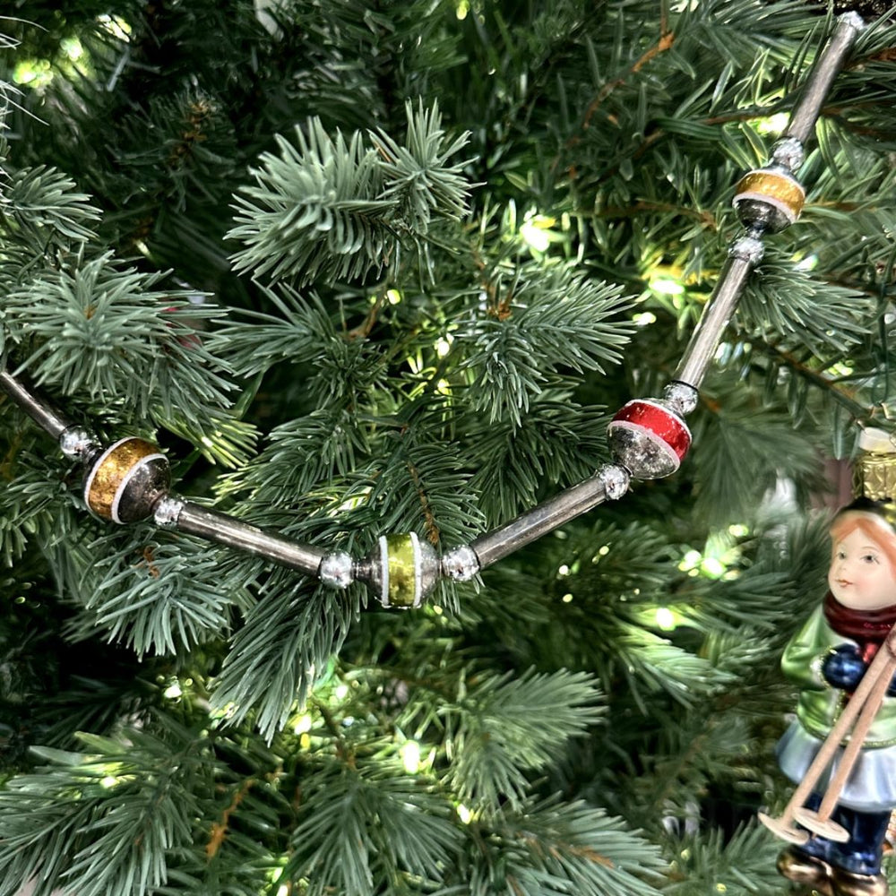 GLASS BEAD GARLAND SILVER WITH COLORED BALLS 180CM