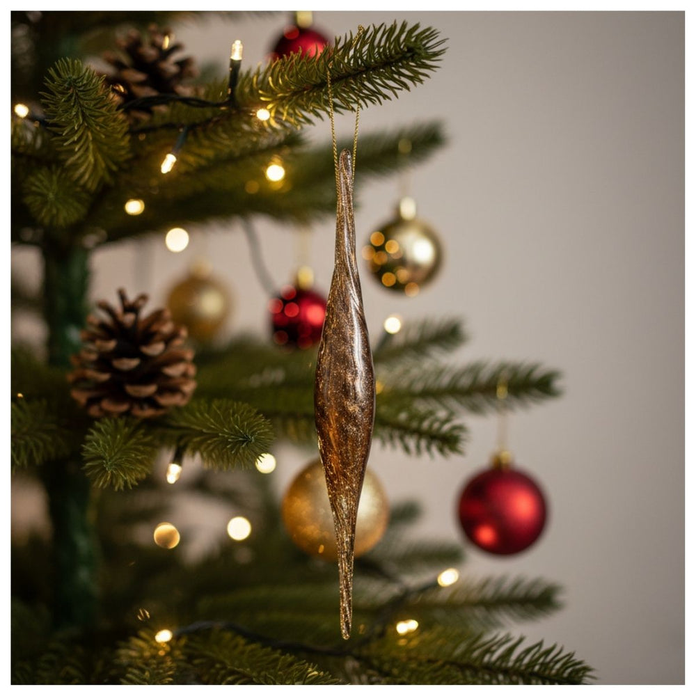 GLASS SPIRAL DROP BROWN GOLD GLASS GLITTER 16CM