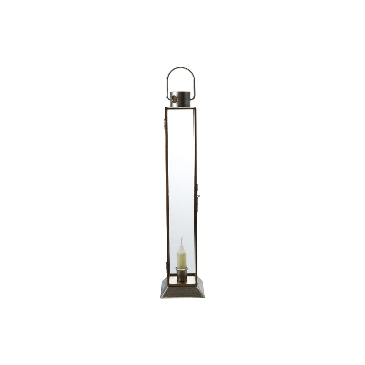 Aporta un toque de elegancia y calidez a cualquier espacio con este sofisticado portavelas tipo linterna. Su diseño combina una estructura de metal con un acabado dorado y paneles de vidrio, creando un ambiente íntimo y acogedor. Con una altura de 36.2 cm, es una pieza central impresionante, ideal para mesas de comedor, consolas o repisas, añadiendo un brillo refinado a tu decoración.