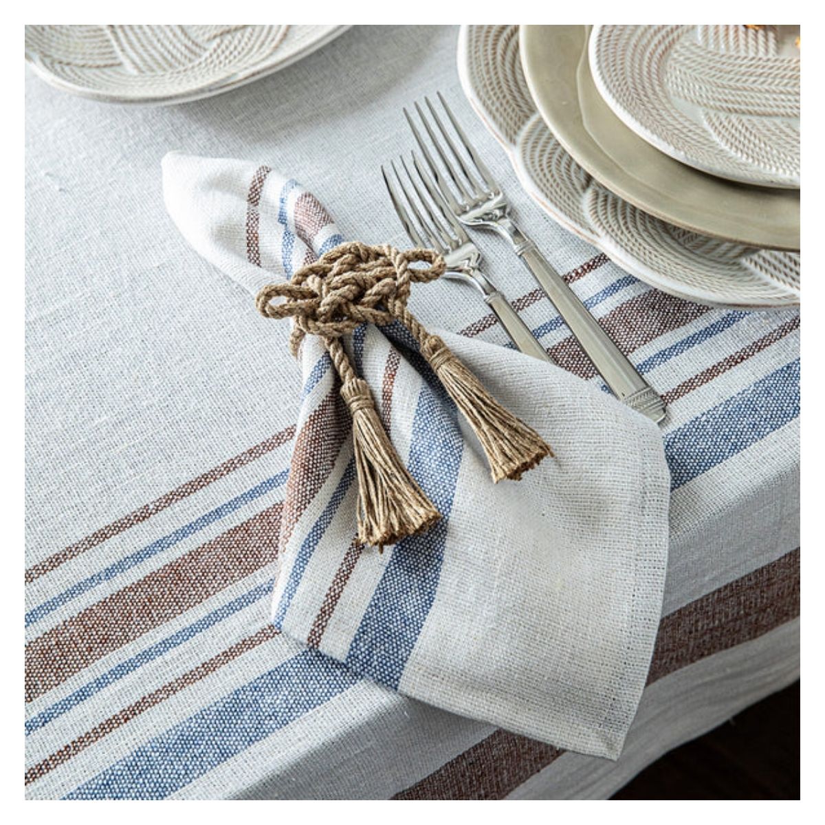 Amarre la configuración de su mesa con estos anillos de servillata anudados hechos a mano con trenzas intrincadas y entretejidas, que aportan un toque de herencia de diseño náutico y una cálida textura a su estilo. Sus dimensiones son 11.43 cm de largo, 6.35 cm de ancho y 15.24 cm de alto.