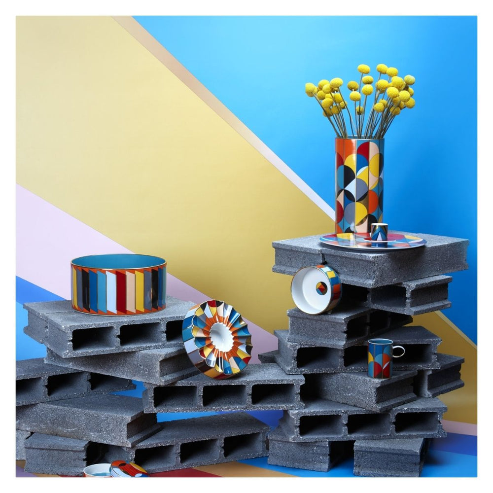 NEW LIVING PVD HI-TECH GOLD HOLDER W/SPAHETTI PORCELAIN 27 CM.
