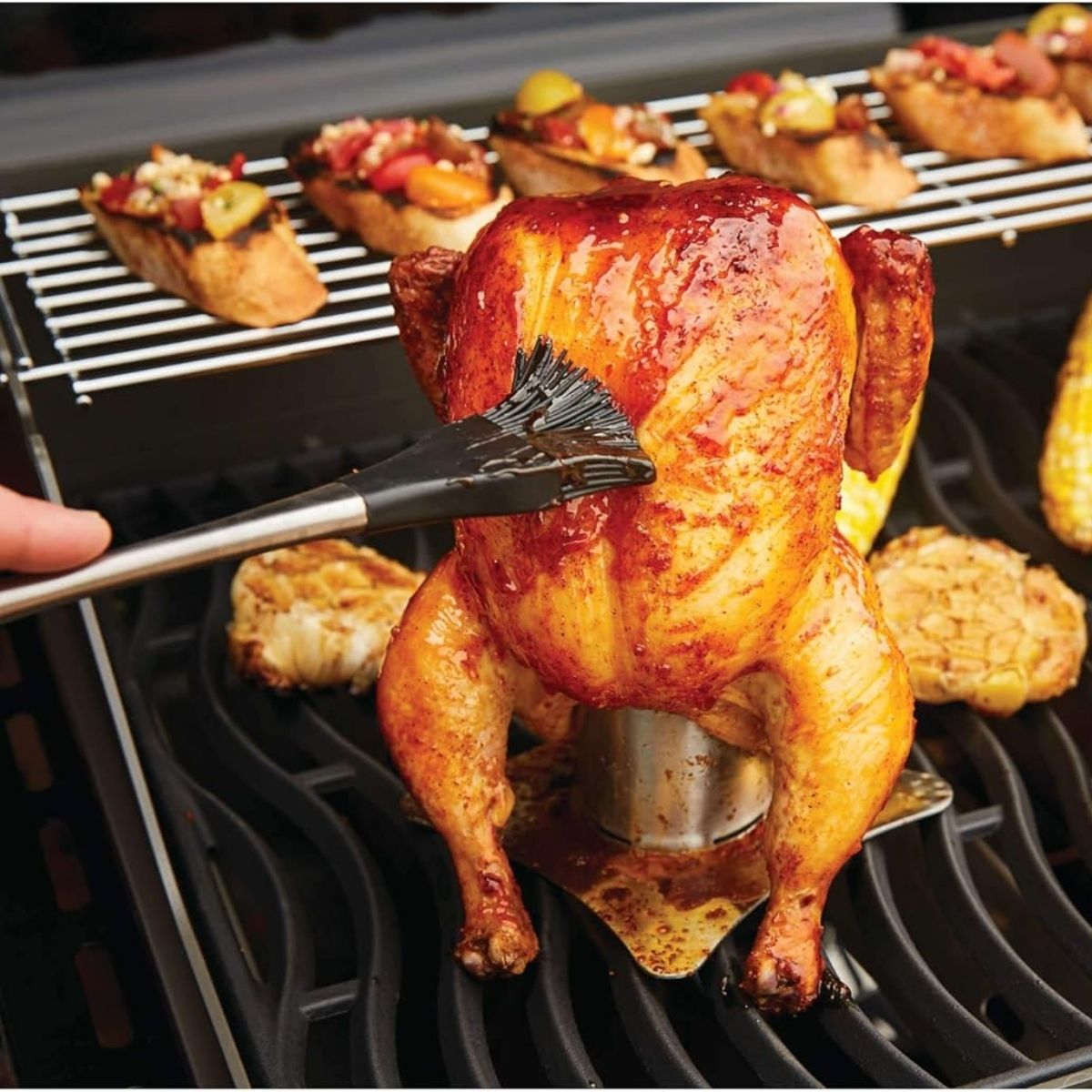Características: Cabezal de silicona resistente al calor que no desprende cerdas ni se deforma. Mango ergonómico de acero inoxidable que proporciona un agarre cómodo y seguro. Diseño higiénico y sanitario que evita la acumulación de bacterias y residuos. Construcción robusta de grado profesional para una larga vida útil a la intemperie. Longitud de 11.5 pulgadas para mantener las manos protegidas del fuego. Cerdas de silicona que retienen y liberan salsas de manera eficiente y uniforme. Acabado elegante en acero inoxidable y negro que combina con parrillas de alta gama.