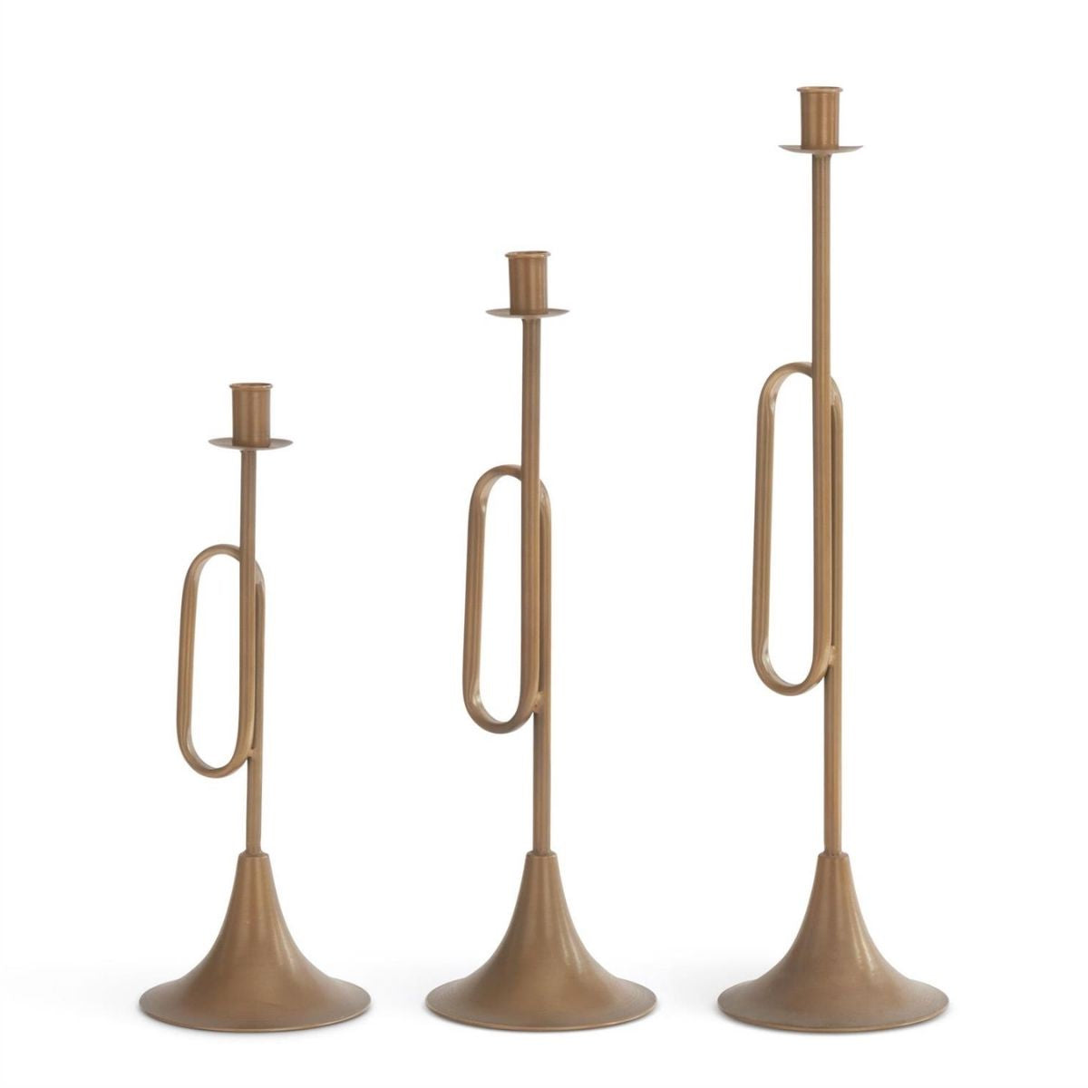 [2/6] | SET OF 3 GOLD TRUMPET TAPER CANDLEHOLDERS - K&K INTERIORS - Compralo en CorinneRegalos.com