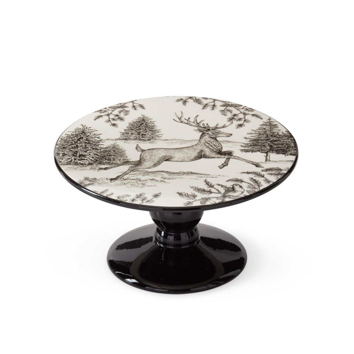 [2/8] | 10.25 INCH WHITE & BLACK TOILE W/DEER CAKE PLATE