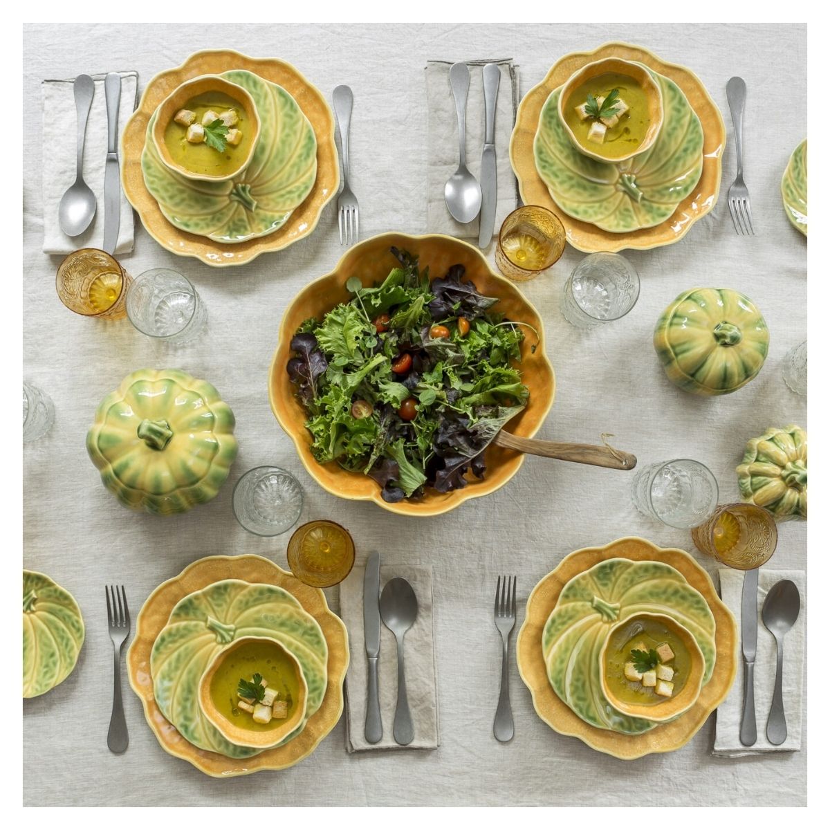 Sirve tus sopas y cremas con un estilo inigualable en esta sopera de la colección Pumpkin. Su diseño, que evoca una calabaza realista, no solo es funcional sino también una pieza de conversación en cualquier mesa. Fabricada en Portugal por Bordallo Pinheiro, esta sopera de loza es perfecta para las celebraciones de otoño o para dar un toque de color a tus comidas diarias. Sus dimensiones son 17.5 cm de largo, 17.5 cm de ancho y 14 cm de alto, con una capacidad de 1500 ml y un peso de 1.89 lb.