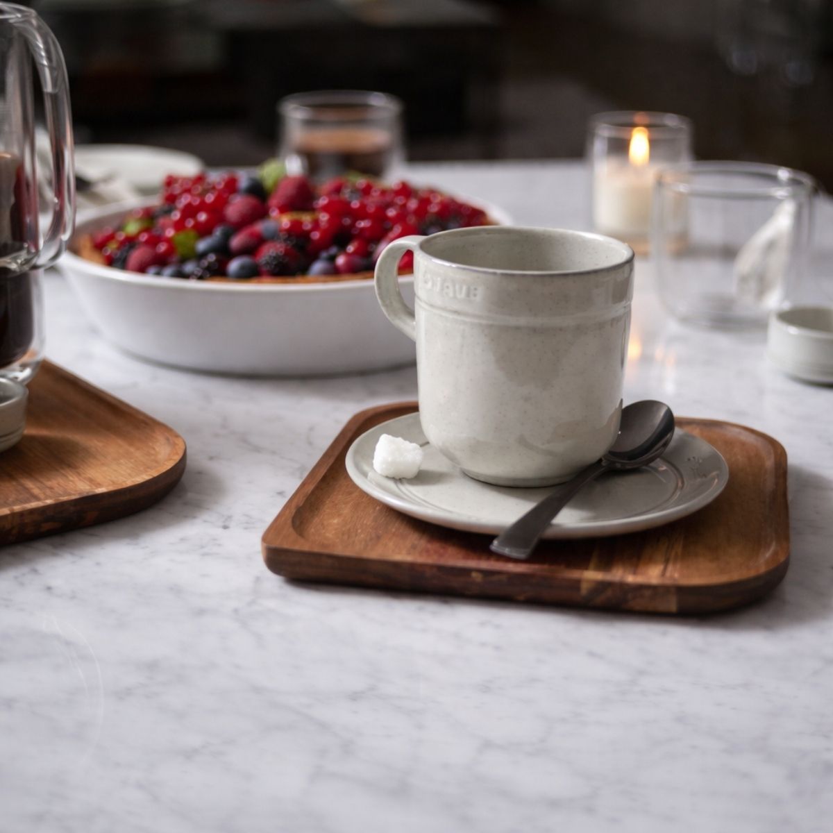 Tono Blanco Trufa Exclusivo: Un color neutro y luminoso que coordina perfectamente con la icónica colección de cocottes de hierro fundido de STAUB.
