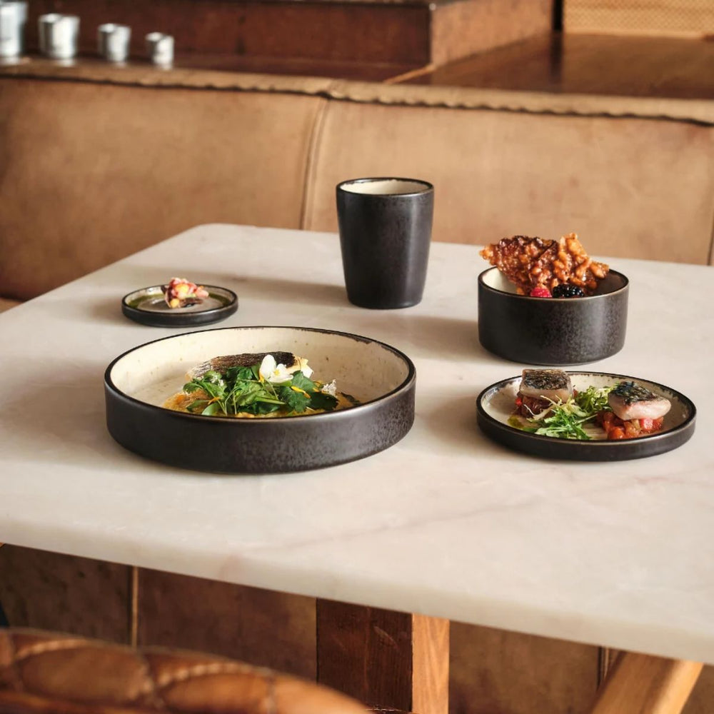 - Estética Industrial: Acabado mate texturizado tipo "Iron" que aporta sobriedad y un toque vanguardista a la mesa.