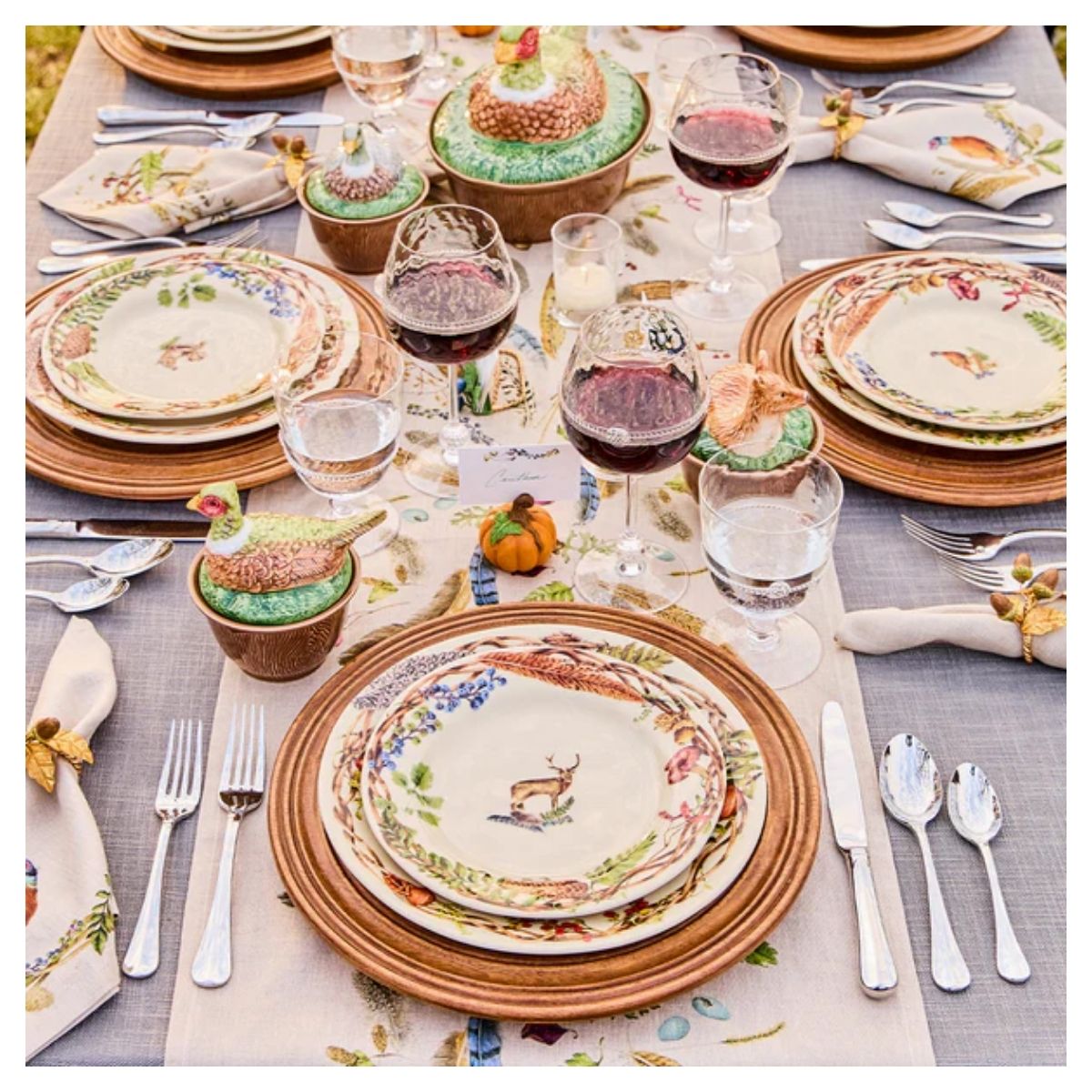 Un halo de tesoros encontrados en los paseos por el bosque está ingeniosamente dispuesto para enmarcar a nuestro majestuoso ciervo y cualquier ensalada o postre que imagines en este plato de inspiración forestal que aporta una capa de color intenso y un toque de fantasía estacional a la mesa. Sus dimensiones son 22.86 cm de diámetro y 1.91 cm de alto.