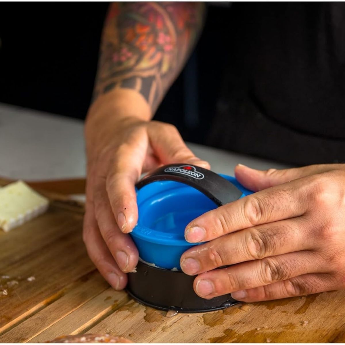El juego de prensas para hamburguesas de Napoleon es la herramienta definitiva para los amantes de las parrilladas que buscan resultados de estilo restaurante. Este kit 3 en 1 permite crear hamburguesas clásicas de tamaño completo, innovadoras hamburguesas rellenas y prácticas minihamburguesas (sliders) con una uniformidad perfecta. Fabricado con plástico resistente de alta calidad y una superficie antiadherente, el diseño incluye una placa inferior extraíble que facilita la extracción de la carne sin que pierda su forma. La prensa principal oculta una herramienta especial en el mango para crear la cavidad ideal para rellenos, mientras que la prensa para sliders permite formar dos unidades simultáneamente, garantizando una cocción pareja y una presentación impecable en cada asado.