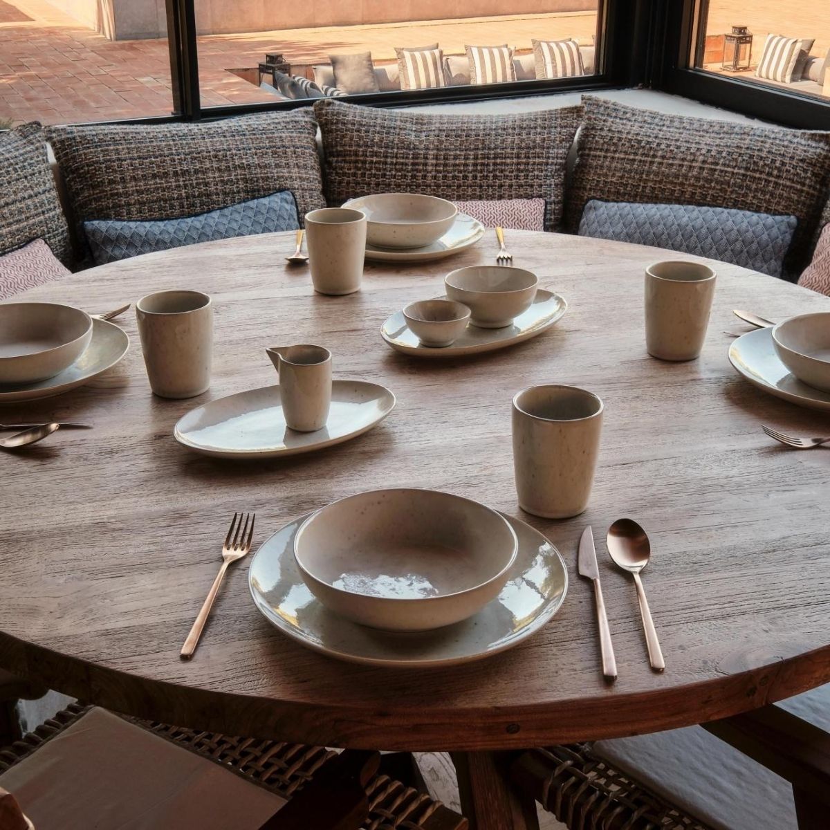 Esmaltado Reactivo Artesanal: Cada pieza cuenta con variaciones de color y textura irrepetibles en tonos arena, inspiradas en la naturaleza.
