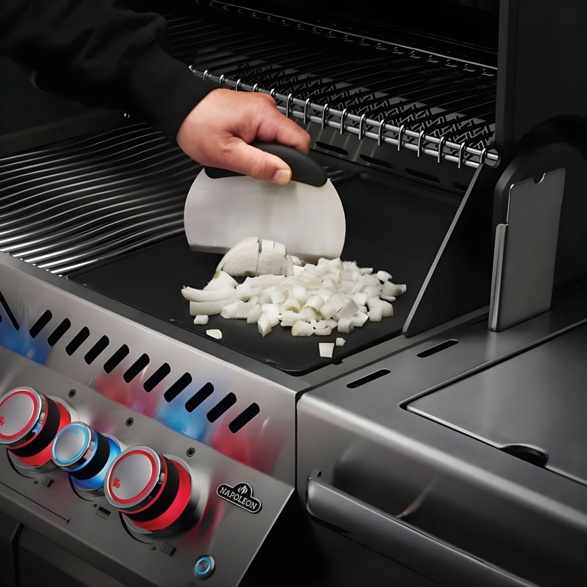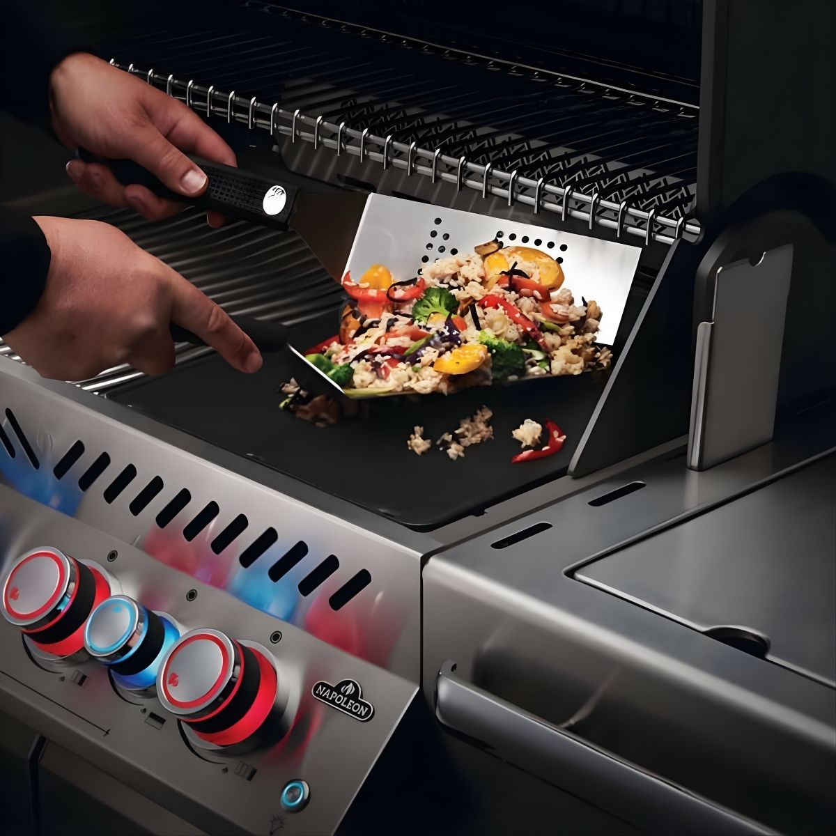 Domine el arte del asado al estilo europeo y teppanyaki con el conjunto de herramientas profesionales para plancha de Napoleon. Este set de tres piezas ha sido diseñado específicamente para maximizar la eficiencia en superficies planas, ofreciendo el control necesario para manipular alimentos variados de forma simultánea. Incluye una espátula sólida y flexible para granos y vegetales, una espátula perforada que permite el drenaje de grasas en carnes, y un picador/raspador de doble propósito. Cada herramienta cuenta con una estructura de acero inoxidable de alta durabilidad y mangos ergonómicos que proporcionan un equilibrio superior, permitiendo movimientos rápidos y precisos durante la cocción.