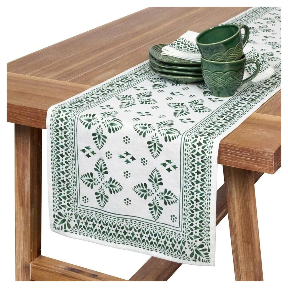 "Iberian Border 18"" x 90"" Table Runner - Evergreen"