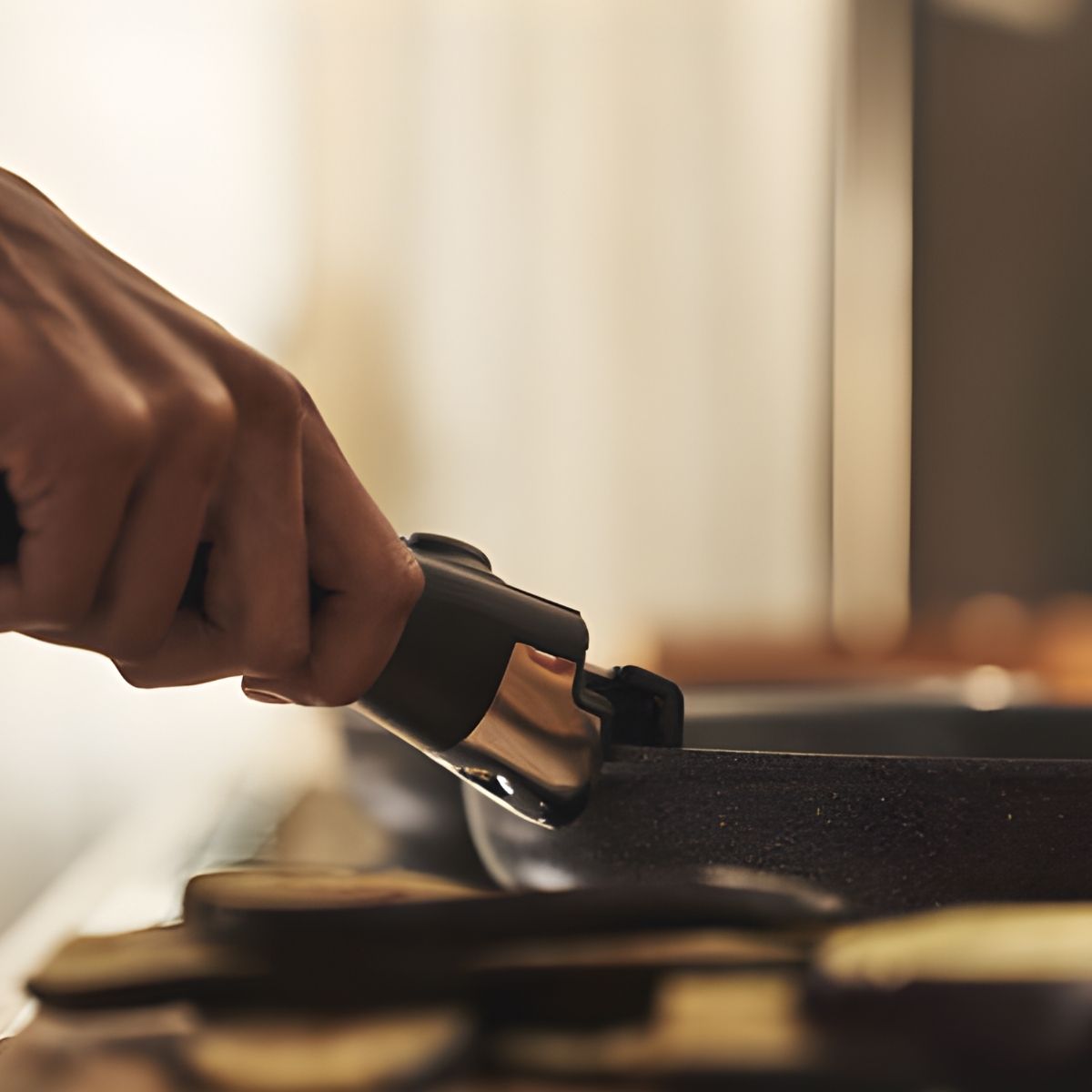 Limpieza del Clip: asegúrese de que la silicona esté libre de residuos antes de acoplarlo para garantizar una protección óptima del revestimiento de la sartén.