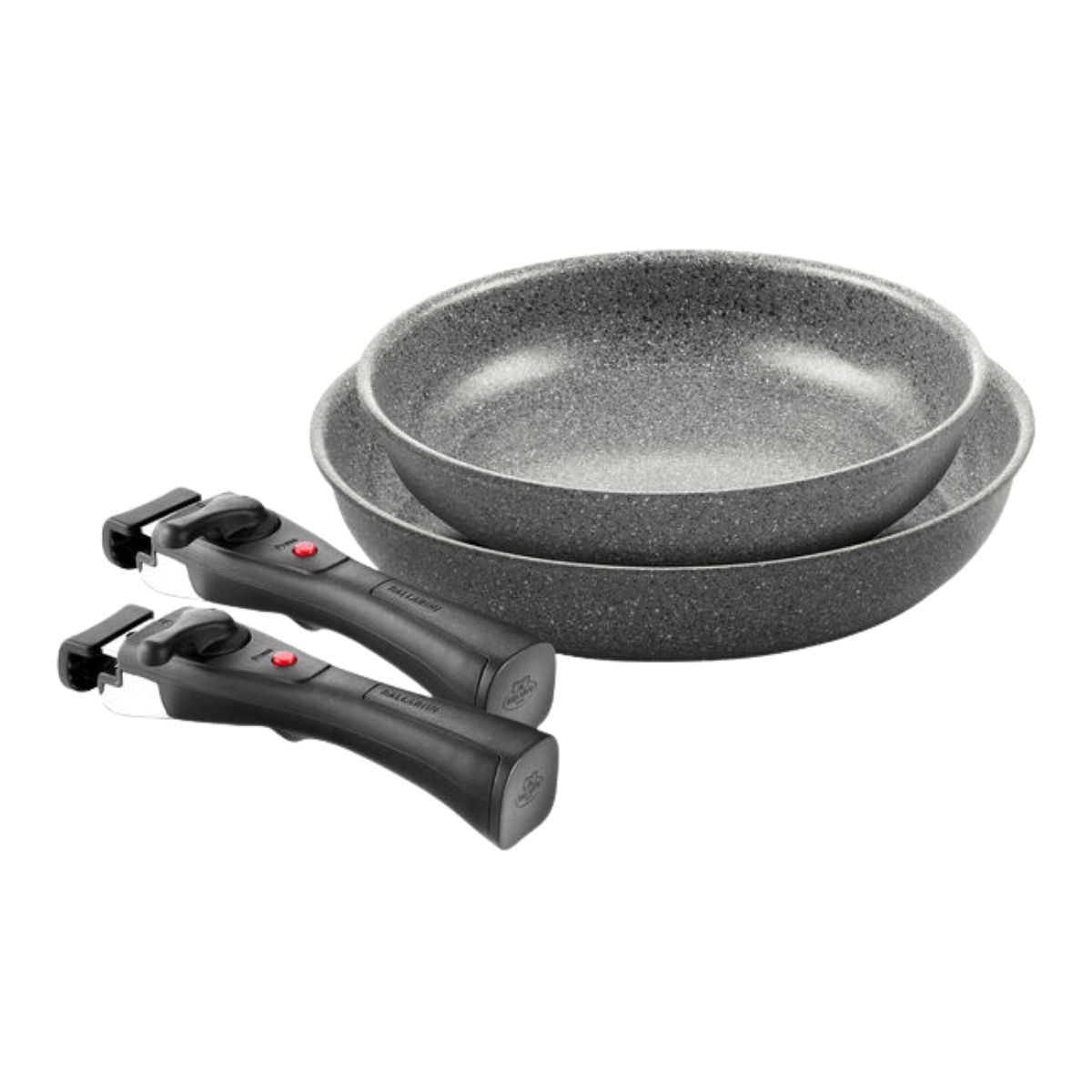 El set de 4 piezas BALLARINI Torre ofrece la máxima flexibilidad para cocinas activas que requieren múltiples preparaciones simultáneas. Este conjunto incluye dos sartenes de gran capacidad (24 cm y 28 cm) y dos mangos extraíbles de seguridad, lo que permite manejar ambas piezas al mismo tiempo con total comodidad. Fabricadas en aluminio de alta calidad, cuentan con el revestimiento cerámico Ceraforce® Granitium de última generación, libre de PFAS y metales pesados. Su base de inducción RADIANT patentada garantiza una distribución del calor uniforme y eficiente. Gracias al sistema de mangos desmontables con insertos de silicona protectora, las sartenes pueden pasar de la estufa al horno (soportando hasta 230 °C) y guardarse de forma totalmente apilable para ahorrar espacio.